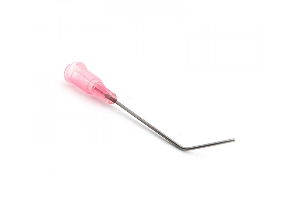 Růžovou zahnutou jehlu máme také 90°-38,1 mm, 45°-12,7 mm, 90°-12,7 mm