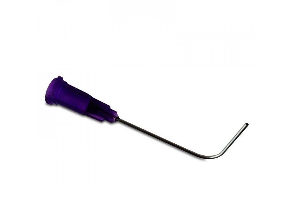 Purporovou zahnutou jehlu máme také 45°-38,1 mm, 45°-12,7 mm, 90°-12,7 mm