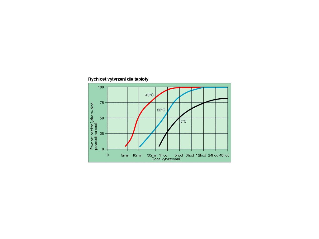 TYPICKÉ VLASTNOSTI NEVYTVRZENÉHO MATERIÁLU: - Měrná hmotnost při 25 °C 1,08 - Bod vzplanutí - viz Bezpečnostní list - Viskozita, Brookfield - RVT, 25 °C, mPa•s (cP): - Vřeteno 2, rychlost 20 ot/min. 500 až 900 LMS.